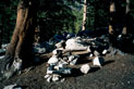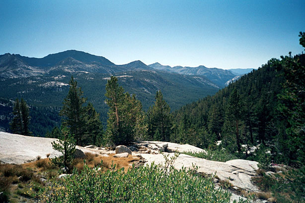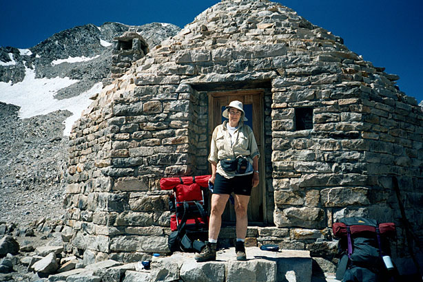 | The switchbacks led to the top sooner than I expected, actually. I didn't see Muir Hut until I was upon it. What a relief. Whew! I was singing "Dirait-on" in my head but I find that I often don't sing because my pace is so slow that even thinking of music takes much-needed energy. At the top we met Pete and Colleen, two very friendly folks who both work at the Ahwahnee and were doing a one week Mammoth to South Lake trip. | |||||