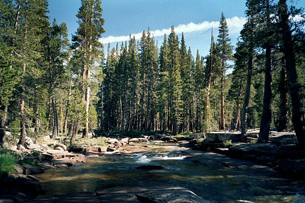 along. Shortly after a log crossing of Hilgard Creek, we made camp about