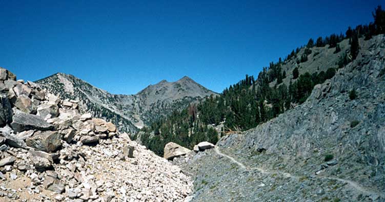 Tully hole was very nice, including the climb up to it from the Cascade Valley junction, though the switchbacks above were murderous and ugly. Winnett's book says something about "metavolcanics" and whatnot. Ugly slate and dust trail is he should have said, with a big-ass switchback at the top to make things extra-thrilling. Still, it's a short day today. Can't complain about a little bit of uphill. |