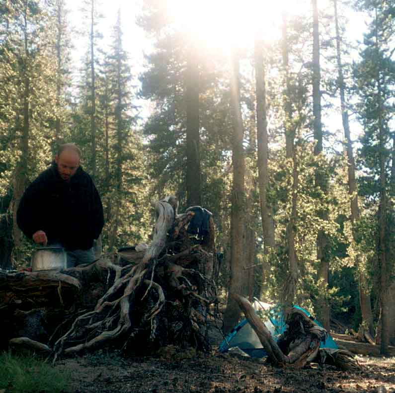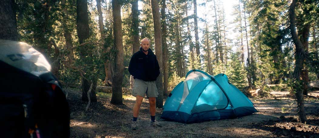 Two shots of Will in the campsite.
