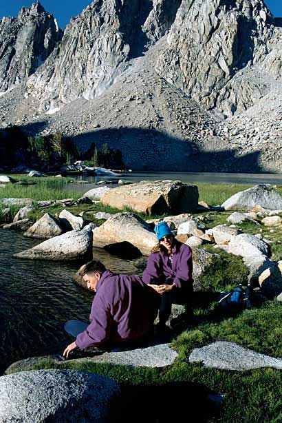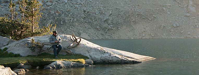 at Florence Lake for a resupply. I watched their progress up the pass
