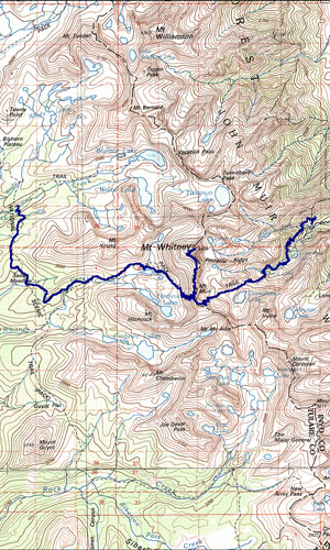 It's always the same when you arrive at the trailhead. You tumble out of the car, skin numb from the A/C (if you're lucky enough to have it) surprised at the chill in the air, the silence, the hiss of wind through the pines, you still have the film of that Big Mac in your mouth (don't worry, you'll be throwing it up soon) and the melody f that Steely Dan song you were just listening to (or that Alice in Chains tune, or that Streisand ballad, or that Jimmy van M mix...) rattling about in your brain. And with creaky knees, you begin to assemble your stuff. Welcome to the John Muir Trail. Actually, you're not there yet, and that's the funny part. The trail doesn't start until you reach the crest of Whitney. Following is the description of the trail:
